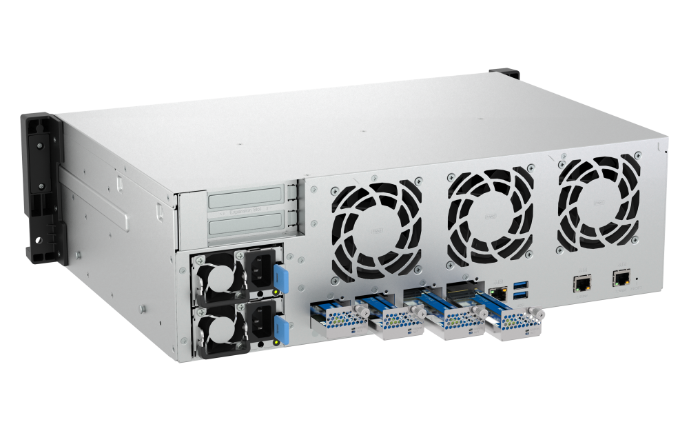 12+4 hibrid tárolórekesz, Intel® Atom® 8 magos processzor, opcionális 25 GbE-s és E1.S/M.2 NVMe-s bővíthetőség támogatásával. Lemez nélküli egységként vagy QNAP által hitelesített meghajtókkal kapható.