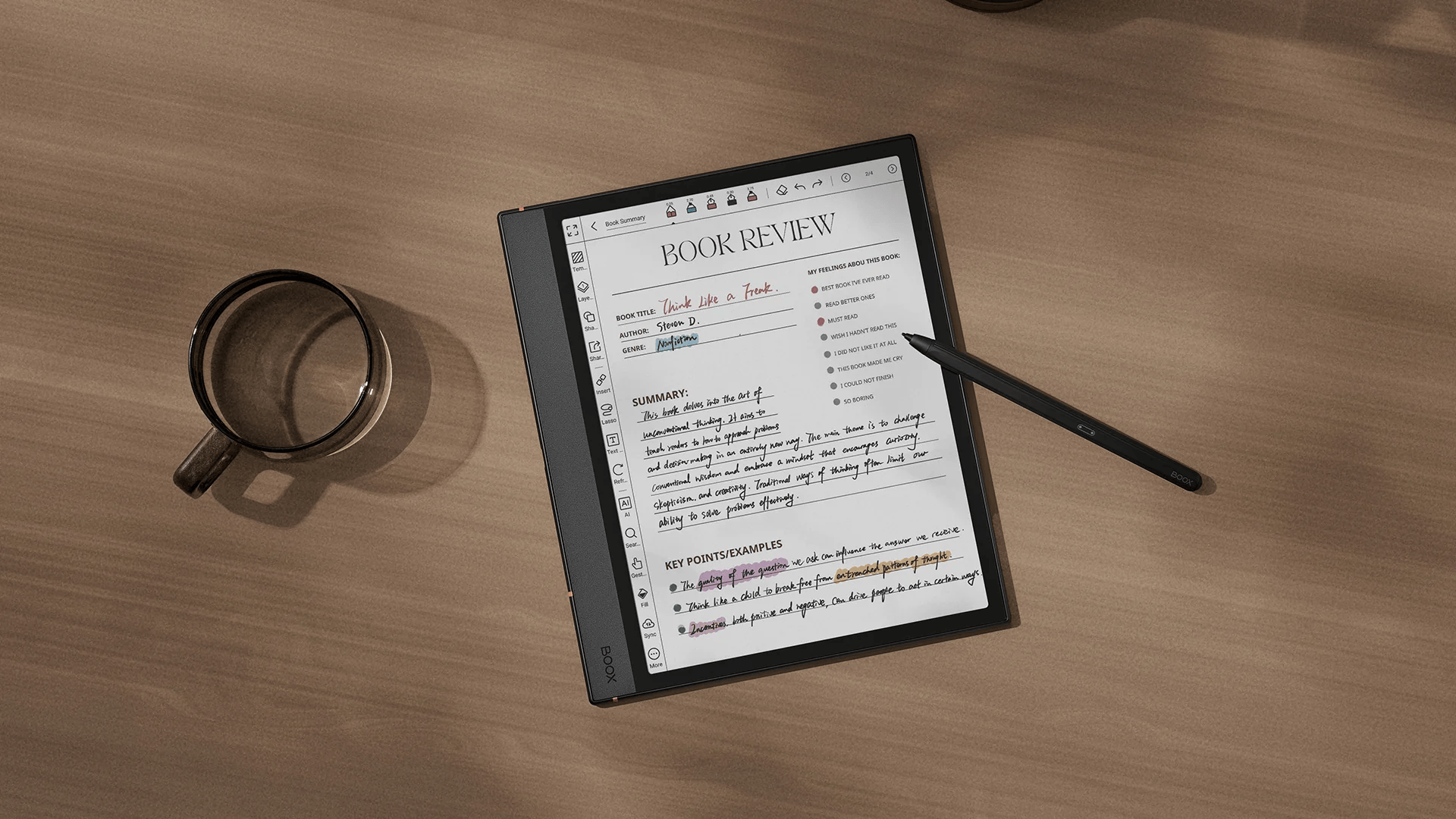 Az olvasás befejezése után szánj egy percet a lényeg leszűrésére úgy, hogy összefoglalót írsz a saját szavaiddal! Összpontosíts a legfontosabb pontok és talán két vagy három kulcsfontosságú példa rögzítésére! Ez a gyakorlat megszilárdítja a megértést és biztosítja, hogy valóban megértetted az olvasottakat. Papírszerű textúrával és intelligens íróeszközökkel a BOOX tabletek, mint például a Note Air4 C, a Note Max és a Go 10.3, lehetővé teszik a gördülékeny és precíz írást, hogy te a gondolataid rendszerezésére koncentrálhass. A nyílt Android operációs rendszerrel és a Google Play Áruházhoz történő korlátlan hozzáféréssel összefoglalókat is készíthetsz az általad preferált alkalmazásokkal, mint például a Notion, az Evernote vagy a OneNote.